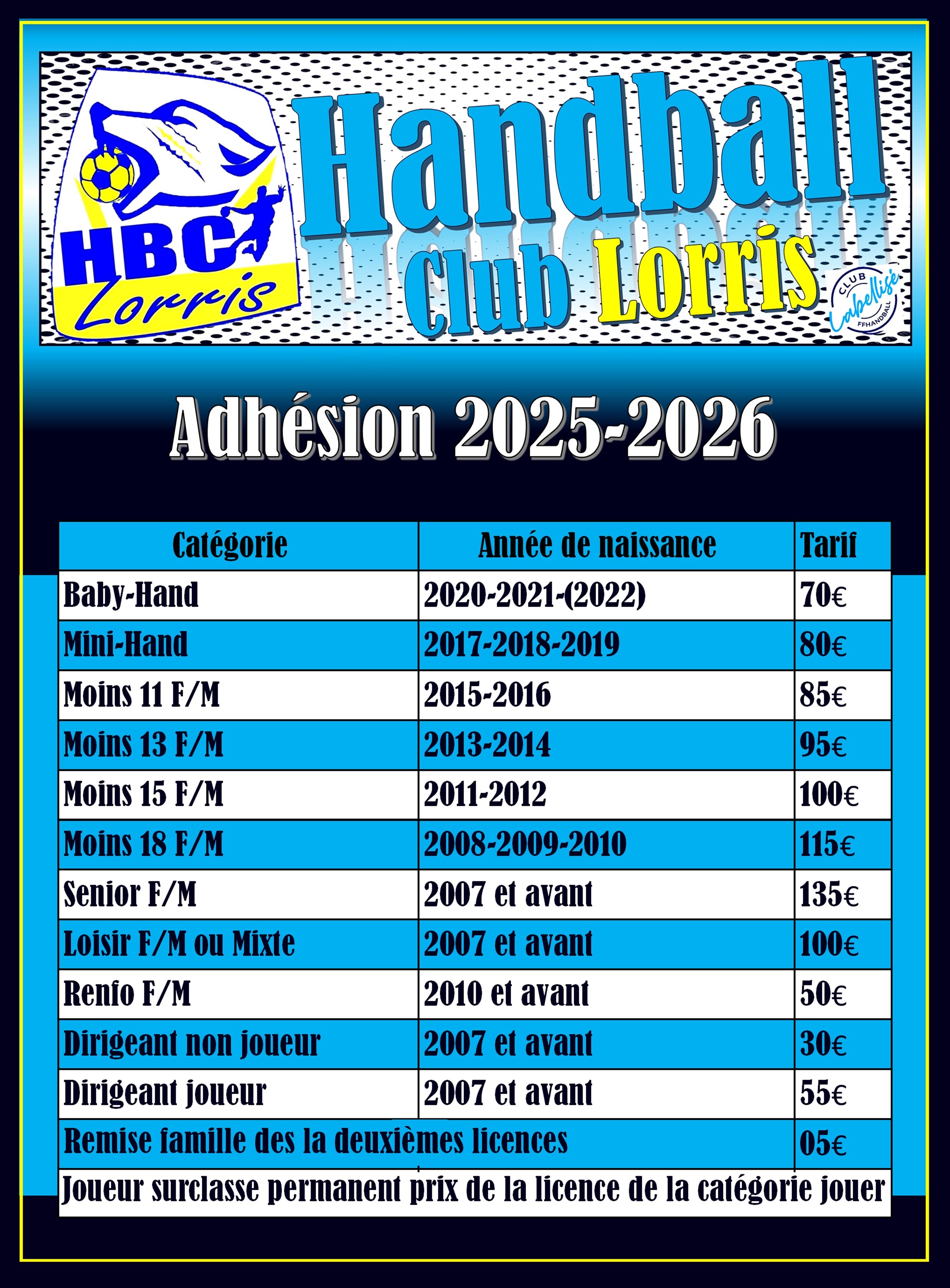 TARIFS SAISON 2025-2026